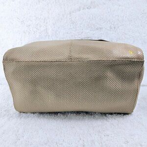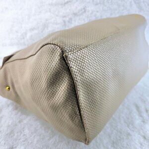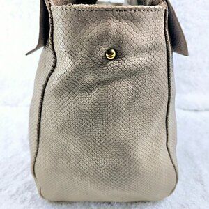 Ecru Textured Patterned Leather Body, Handles, Strap and Trim