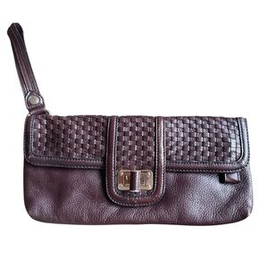 ELLIOTT LUCCA Leather brown Woven Envelope Rectangle Flip Handbag Clutch purse