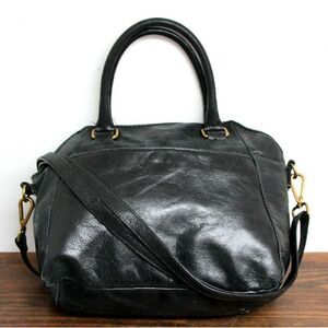 ELLIOTT LUCCA BLACK GENUINE LEATHER TURN LOCK X-BODY TOTE SHOULDER BAG HANDBAG