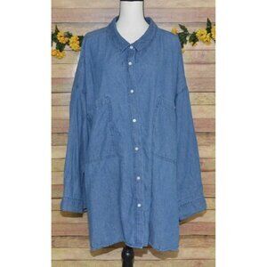 ELLOS Denim Tunic Top Oversized 3X 30/32 Button Front Shirt Side Slits Comfy