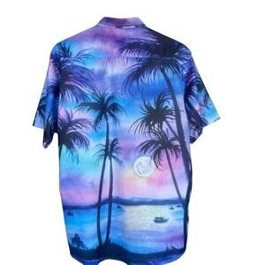 ELMAR Shirt Mens Large Blue Purple Tropical Hawaiian Aloha Palm Tree Button Down