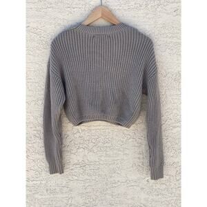 ELODIE GREY CHUNKY KNIT CROPPED CREW NECK SWEATER - XS