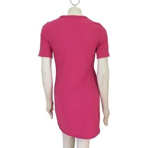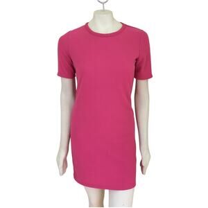 ELODIE Short Sleeve Ribbed Mini Sheath Dress in Barbie Pink SZ 6