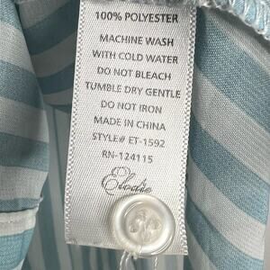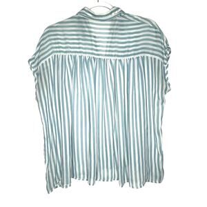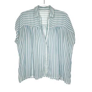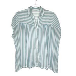 ELODIE Striped Short Sleeve Button-Front Shirt Blouse Sheer Blue White Size M/L
