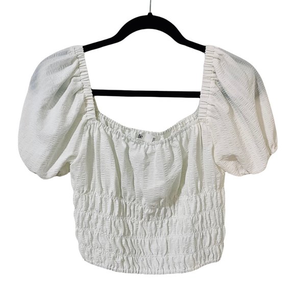 ELODIE White Puff Sleeve Crop Top w/ Elastic Waist Sz. S | Peasant, Princess