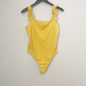 ELODIE Yellow Ribbed Tank Ruffle Straps Bodysuit Large
