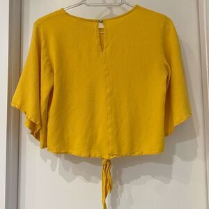 ELODIE nordstrom yellow short sleeve top mustard crop top front tie shirt