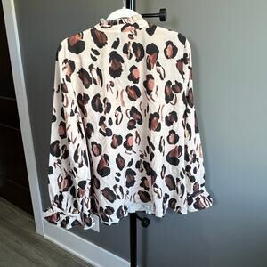 ELOQUII Animal Print Button Up Long Sleeve Blouse Top with Ruffles Size 20