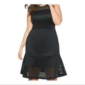 ELOQUII Black Scuba Laser Cut Fit and Flare Knee Length Dress Size 20