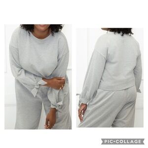 ELOQUII ELEMENTS Women's Plus Tie Sleeved Sweatshirt French Terry Gray 14/16. New with tags. All measurements are approximate.
