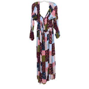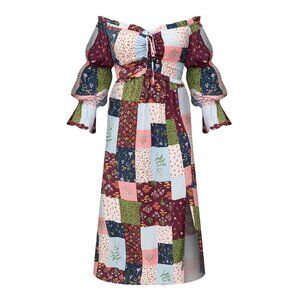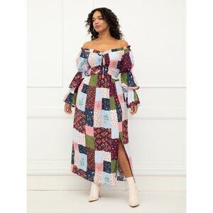 ELOQUII Elements Women's Plus Size 22/24 Off The Shoulder Patchwork Maxi Dress
