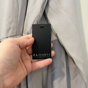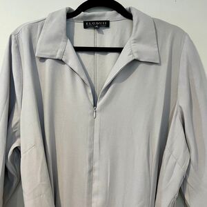 ELOQUII brand light gray colored jumpsuit with a zipper front, collar, and a matching wrap around belt. Long sleeves. Tag size 16 plus size. Brand new with tags.