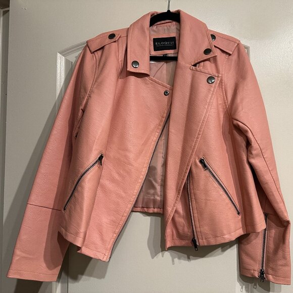 ELOQUII Hot Pink Faux Leather Moto Biker Jacket Plus Size 14/16 Fuchsia RARE