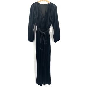 ELOQUII Jumpsuit Size 18 NWT Black Velvet Tie Belt Wide Leg Cocktail Evening