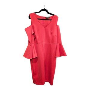 ELOQUII Pink Cold Shoulder Flare Sleeve Scuba Dress - Size 16