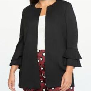 ELOQUII RUFFLE BELL SLEEVE FULL ZIP JACKET Black 22