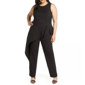 ELOQUII Sleeveless Jumpsuit with Asymmetrical Peplum in Black - Size 14