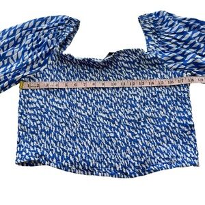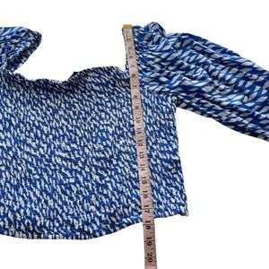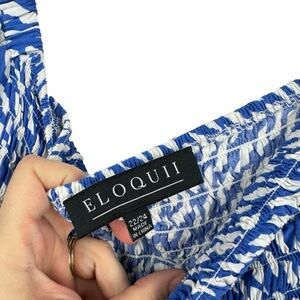 ELOQUII Smocked Crop Top Plus Size 22/24 Long Sleeve 3X Blue & White 100% Rayon