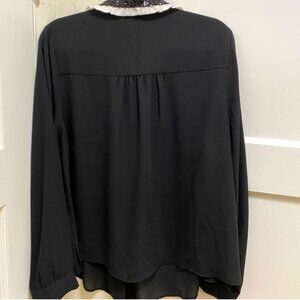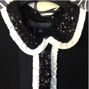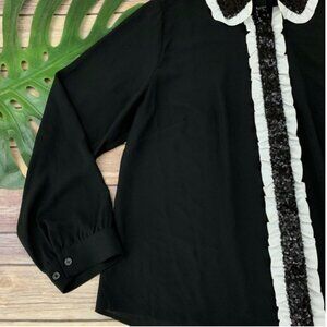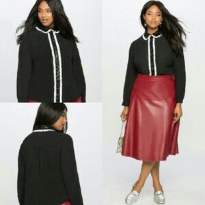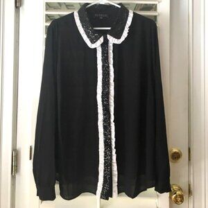 ELOQUII Studio Black and White Ruffle Sequin Tuxedo Button-Down TOP SZ. 16