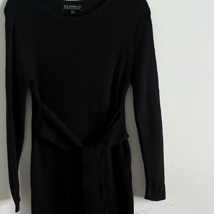 A pretty tie waist pairs perfectly with long sleeves and a classic crewneck to create this ribbed sweater-dress that hugs your curves splendidly.