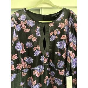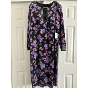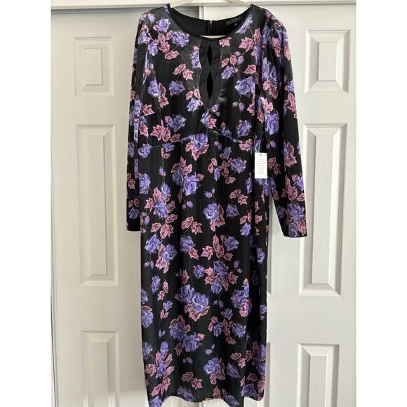 ELOQUII Velvet Plus Size 24 Midi Dress Floral Black Purple New