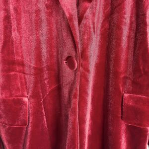 Whether styled with trousers, skirts, or jeans, this red velvet blazer adds instant confidence and a touch of bold sophistication.