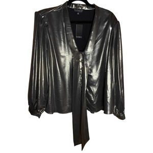 ELOQUII Women's Silver Gold Bronze Metallic Bow Long Sleeve Blouse Size 20 NWT