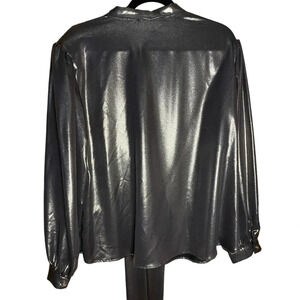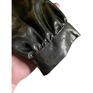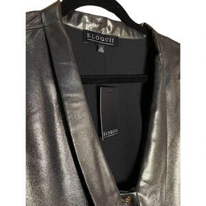 Hey there! I have this amazing ELOQUII Women's Silver Gold Bronze Metallic Bow Long Sleeve Blouse in Size 20 that is brand new with tags. The color is absolutely stunning as it ranges from gold to bronze to silver, depending on how the light hits it. It's just the perfect top for those upcoming holiday parties! To really make a statement, you can pair it with black slacks or a black skirt for a showstopping look. It's worth mentioning that this blouse originally retailed for $79.95, so you're truly getting a great deal!