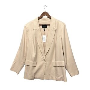 ELOQUII Womens Size 18 Blazer Jacket Beige Linen Cotton Office Career Preppy