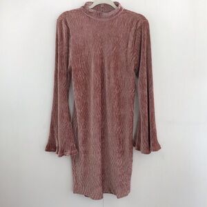 ELOQUII Y2K Flare Bell Sleeve Stretch Rose colored rib Velvet Dress size…