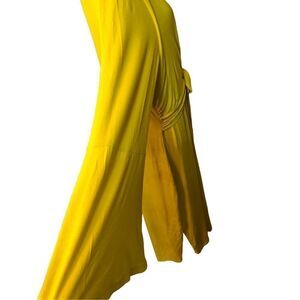 ELOQUII Womens Midi Dress Bell Sleeve Front Wrap Yellow Career. Jersey knit, very soft yellow mustard, tie front, bell sleeves maxi dress.