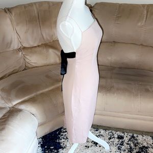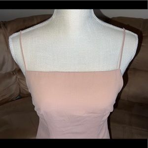 Pre loved like new ELPIS blush mini dress. Tie back detail. Zip back closure. Square neckline. Open back. Back slit.