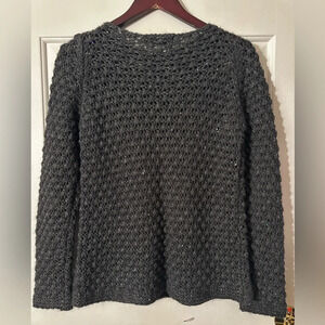 ANTHROPOLOGIE Elsamanda Sparkle Sequin Gray Popcorn Knit Sweater Alpaca