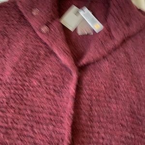 Made in Italy. Sleeveless chunky soft cardigan in burgundy shade made of alpaca wool blend.