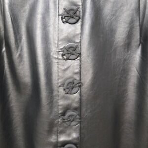 ELVI Pencil Skirt Plus Size 20 Black Faux Leather Midi Unique Button Bow Whimsy