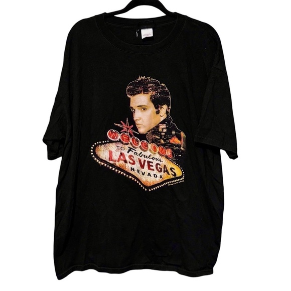 ELVIS Graphic Band Concert Festival Collector Black Las Vegas Tee Shirt Size 2X