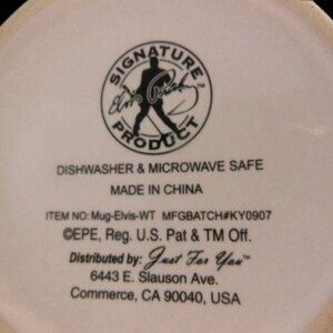 Elvis Presley Signature Coffee Cup Mug "Elvis Always the Original" Just For You. Predominant colors are red, blue, black, and white,