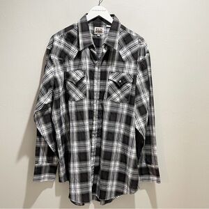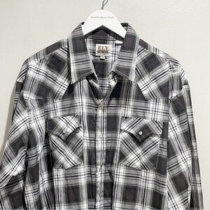 ELY CATTLEMAN Men’s Black White Plaid Pearl Snap Long Sleeve Western Shirt XXL