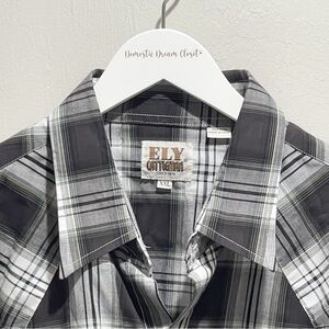 ELY CATTLEMAN Men’s Black White Plaid Pearl Snap Long Sleeve Western Shirt XXL. Very good pre-owned condition. Gentle signs of wear. No stains or holes. All measurements are approximate.