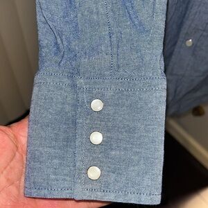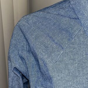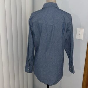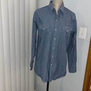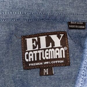 ELY CATTLEMAN Men's Blue Chambray Western Pearl Snap Shirt L/S - Size M - VEUC!*. This is in clean condition. Ultra-classic chambray style western shirt with pearl snaps. 2 pockets. Well made.