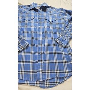 ELY Cattleman Blue Plaid Pearl Snap Button Western Shirt Men’s Medium
