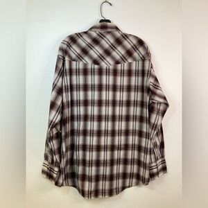 ELY Cattleman Western Yoke Shirt Pearl Snap Brown Plaid Front Pockets Men’s XL