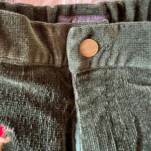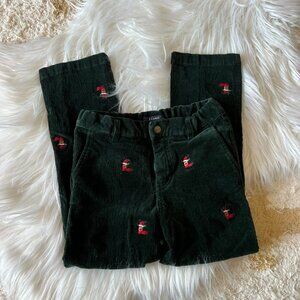 ELand Reindeer Christmas Embroidered Forest Green Corduroy Pants Size 7