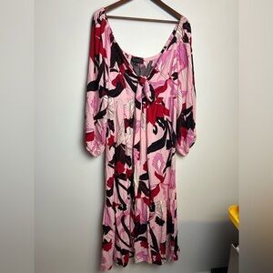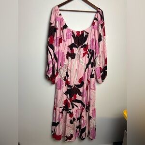 ELoquii Maxi Dress Plus Size 16 Women Floral Tiered Half Sleeve Slit Hem