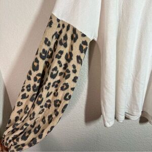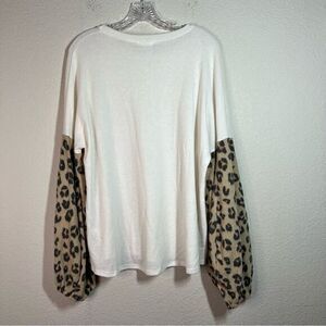 E. Luna White Leopard Print Puff Long Sleeves Pullover Top Women's Size 1X