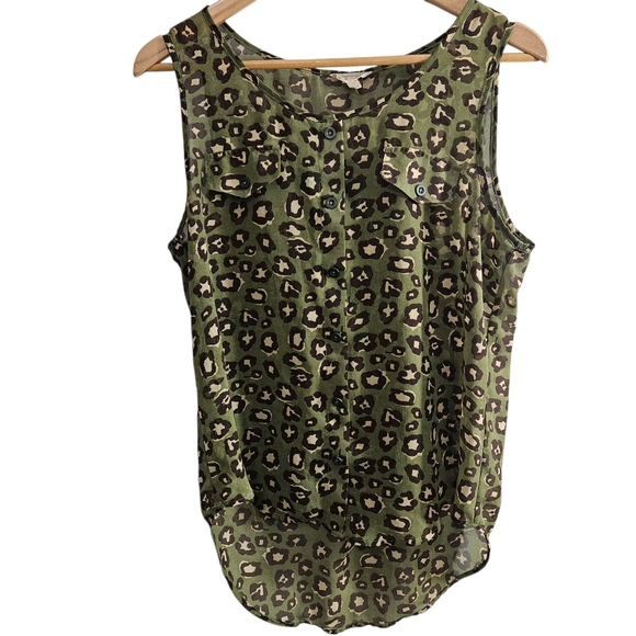 E&M Animal Print Sleeveless Blouse Womem's. Two front top pocket. Size Medium, see photos for measurements and color.