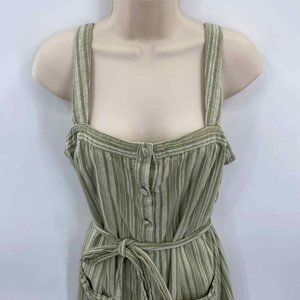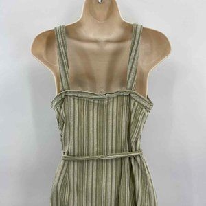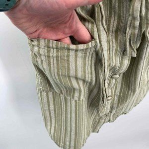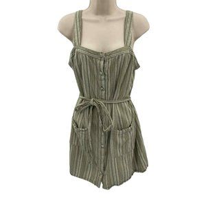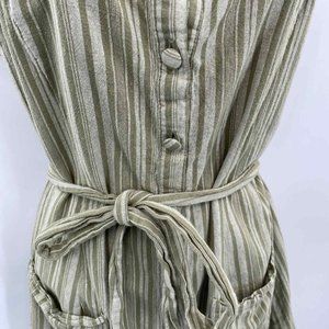 E&M Button Front Dress Womens Large Green Cotton Stripe Belt Pockets