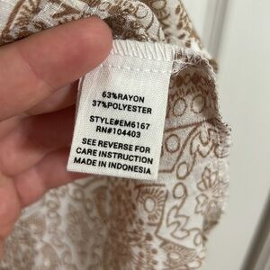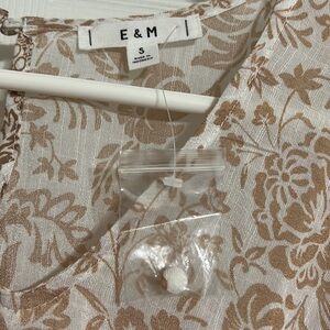 E&M Women’s Tan and White Floral Print Rouched Top Blouse Size Small NWOT