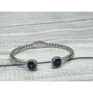 EMA Signed Sterling Silver 925 Lab Created Sapphires CZs Hinged 6.5” Bracelet