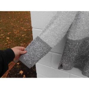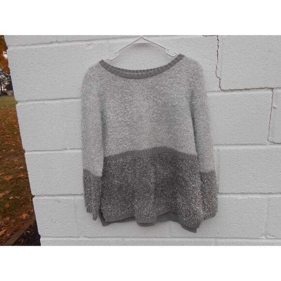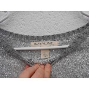 EMALINE Womens Size PM Gray Metallic Fuzzy Long Sleeve Sweater Holiday New Years
